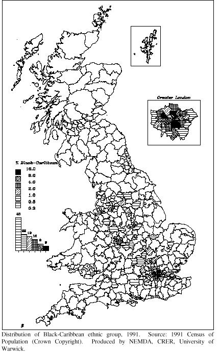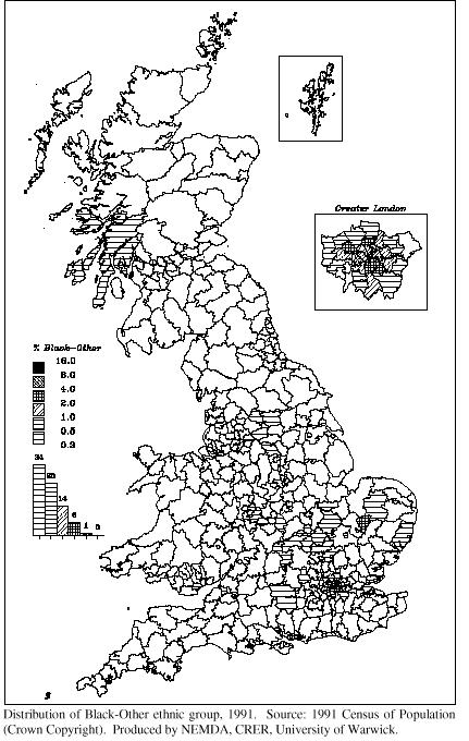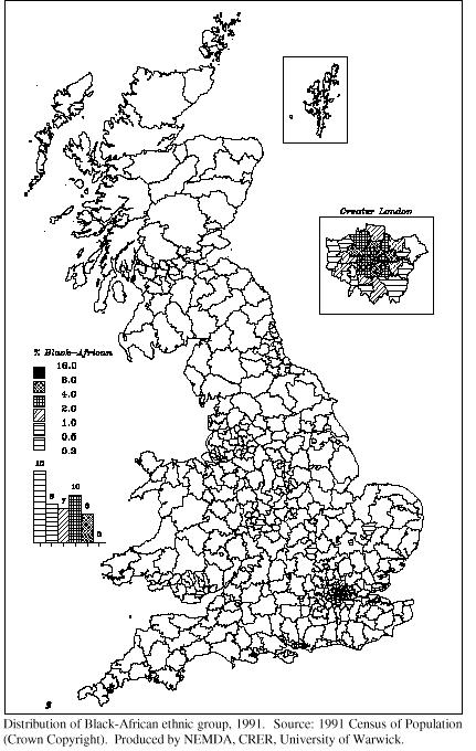 Maps of the geographical distribution of Black ethnic groups in Great Britain, 1991